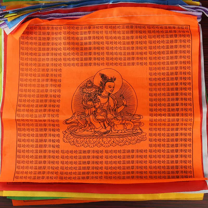 Tibetan sutra flag Silk sutra flag Chinese character version Tibetan King heart mantra Colorful wind and Horse flag Sutra flag Longda 5 meters 21 faces