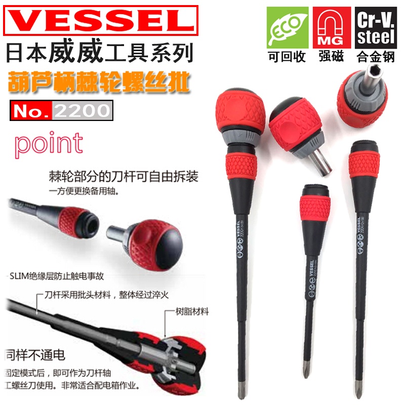 Japan VESSEL Weiwei insulated screwdriver import knocking ratchet cross with high voltage resistant work screwdriver batch-Taobao