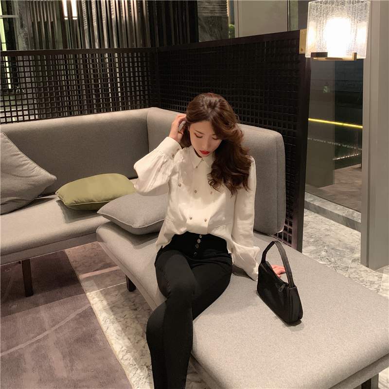 Spring 2020 French court wind clothes bubble sleeve white shirt design aerobic blouse shirt