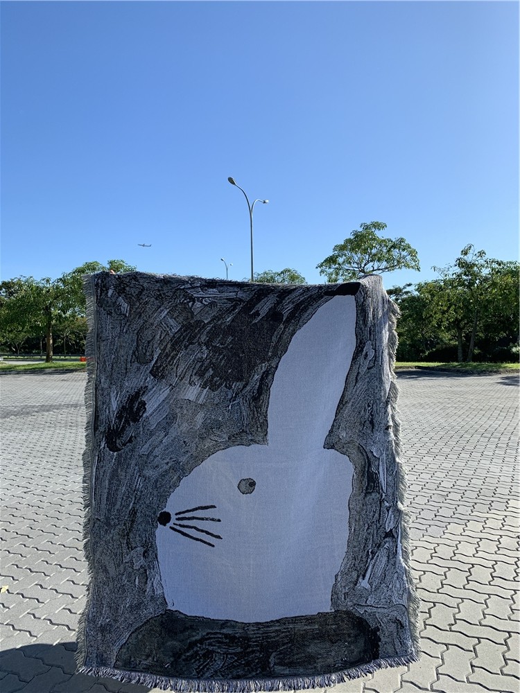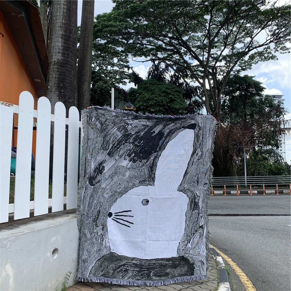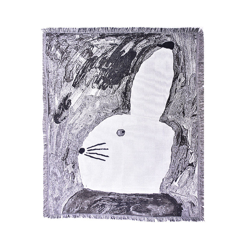 Foreign Price 500 Swedish painter Black and white rabbit Abstract Cute Water Powder Painting Illustrator Design Creative Blankets