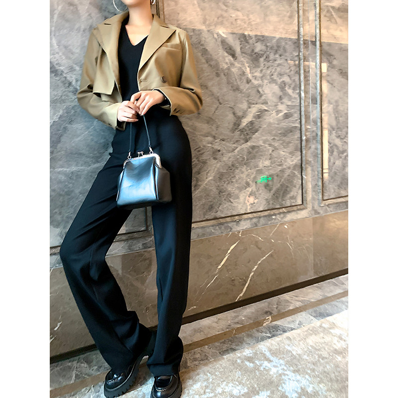 Who wears thin pants 2021 spring/summer black straight pants wide-legged pants women feel drag pipe pants