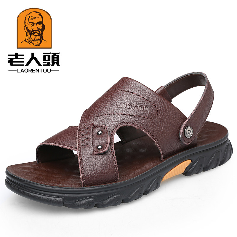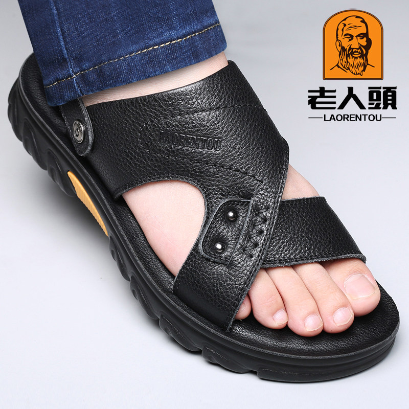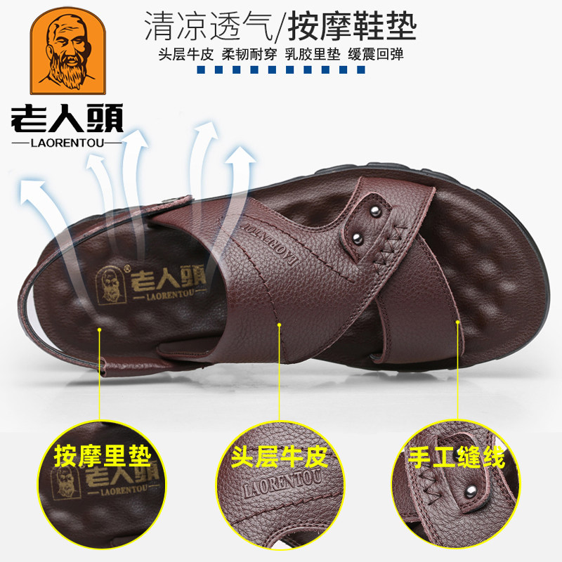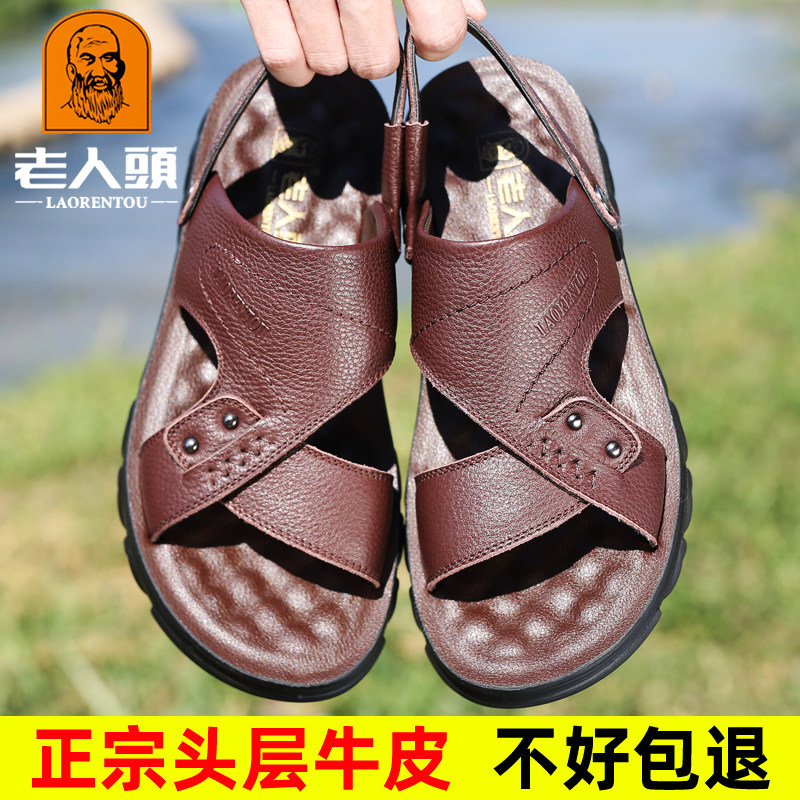 Old man's head sandals male leather casual beach shoes male summer new thick sole wear resistant and slippers in the middle of the year cool slippers