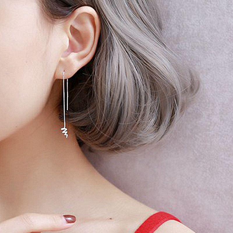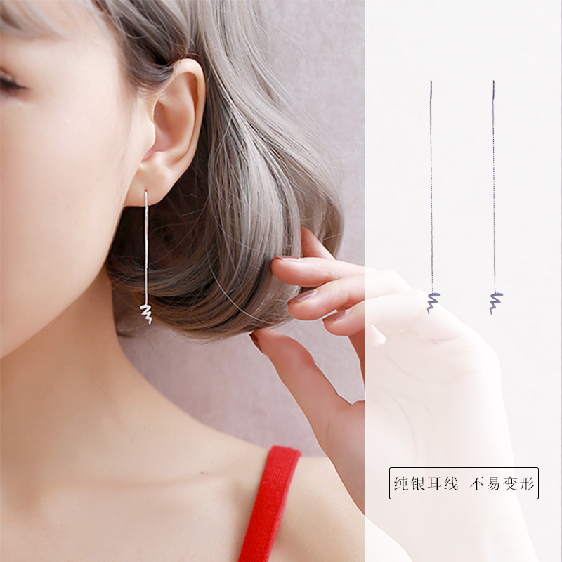 S925 sterling silver line wavy ear wire women Korean temperament simple lightning tassel long earrings personality earrings