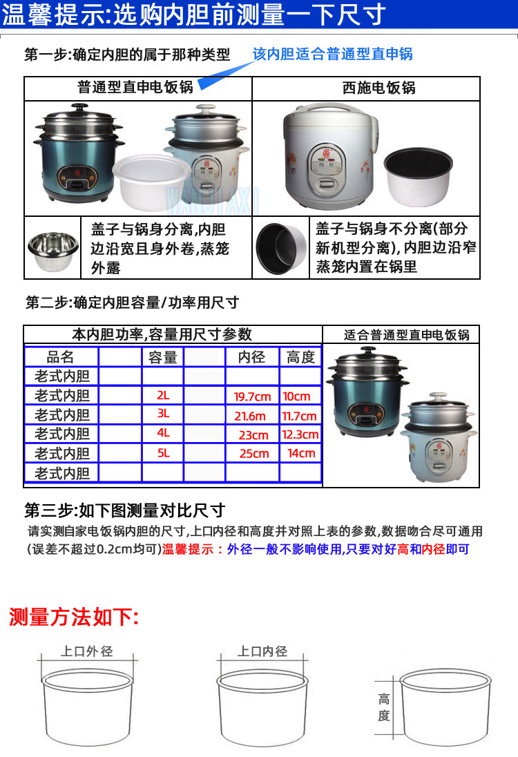 Universal triangular hemispherical rice cooker liner 2L white bile capacity sound Wanbao aluminum rice cooker liner 2L without coating