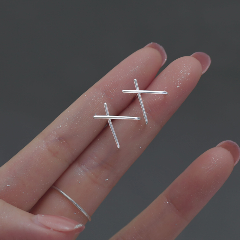 S925 sterling silver cross ear pin female design sense temperament creative simple personality earrings net red cold wind ear clip