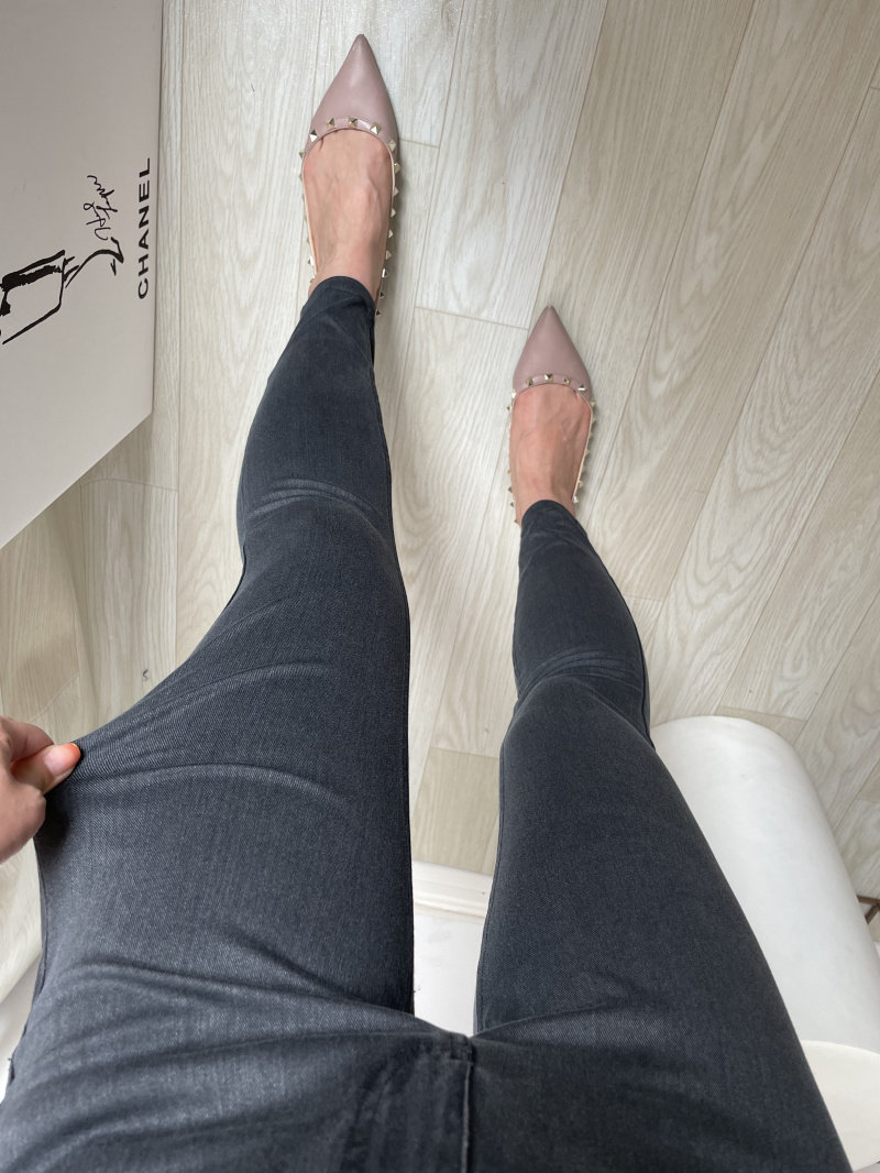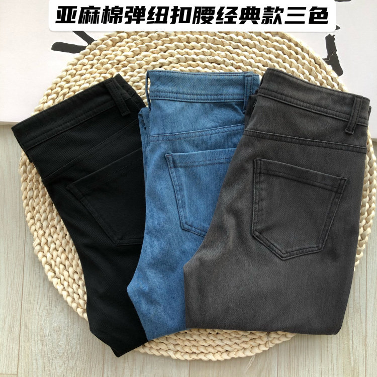 Spring/Summer 2022 C family style linen thin section four-sided elastic cotton thin and slim gray bottoming mid-high waist slim trousers