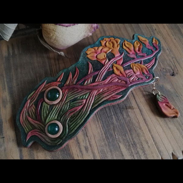 Handmade tanning leather carvings color graffling of natural green granular female hair decoration headdress