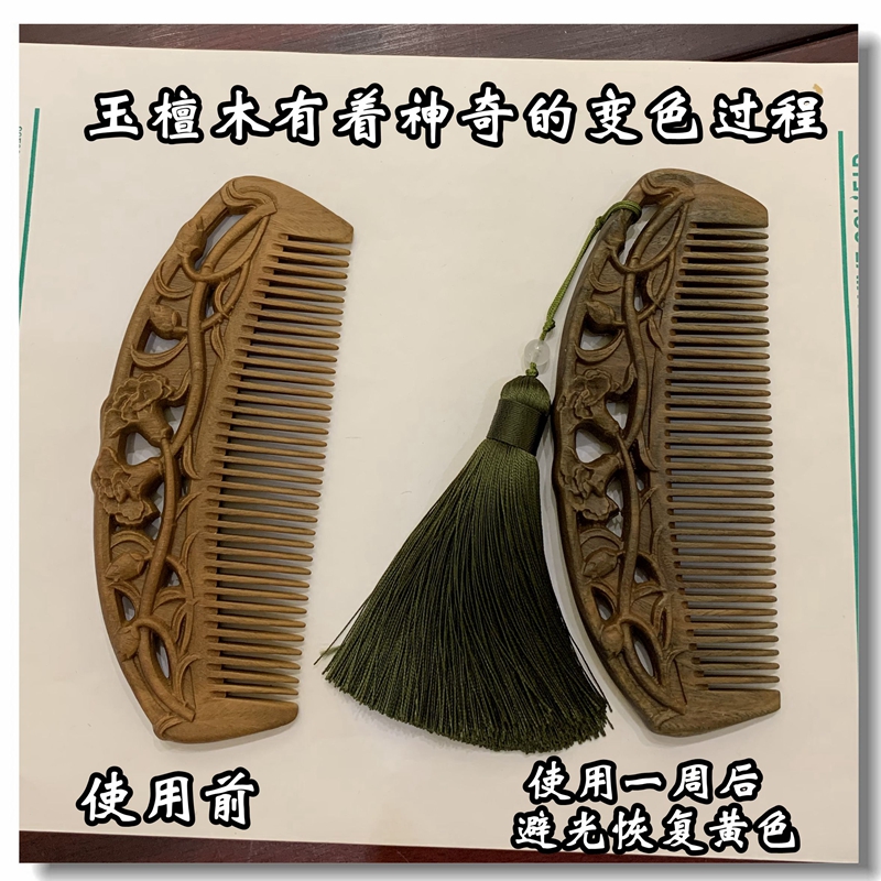 Carnation Teacher's Teacher's Day Mother gift giving mother jade sandalwood log anti-face engraving electrostatic green sandalwood Comb Woman