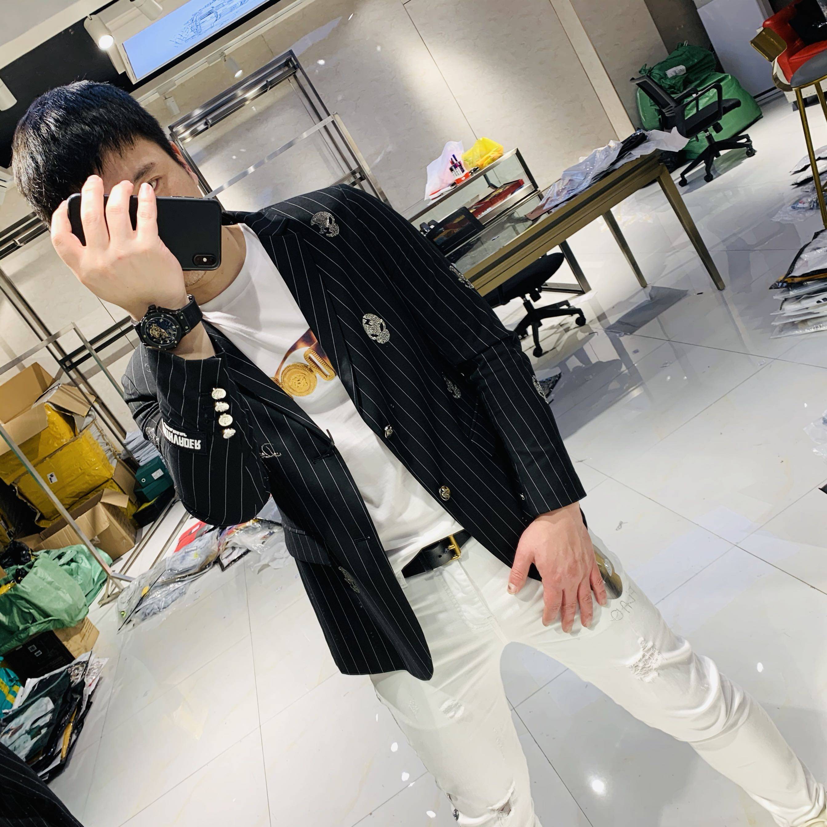 European Station Springtime New Alien Bronzing for minor Western suit Men's Chauded Eurogoods The short Korean version of the Korean version
