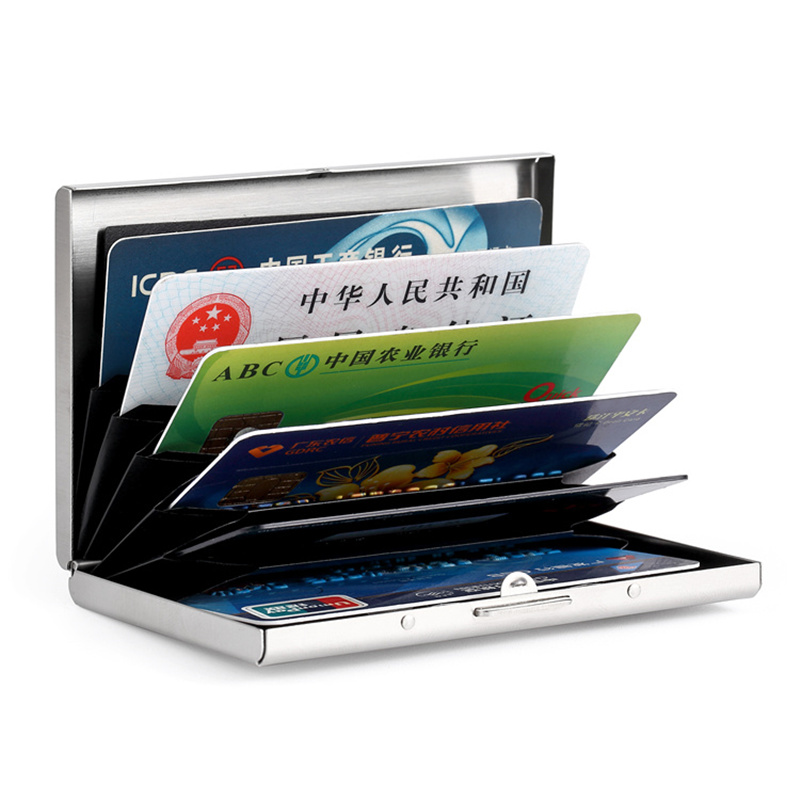 Portable anti-theft brush anti-demagnetization metal card bag for men and women Simple and compact shielded RFID card cover Stainless steel card holder