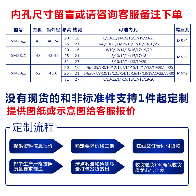 5M26 tooth socket 16 (bandwidth 15) inner hole round hole 5M26 tooth socket 16 (bandwidth 15) inner hole with keyway 5M26 tooth socket 21 (bandwidth 20) inner hole round hole 5M26 tooth