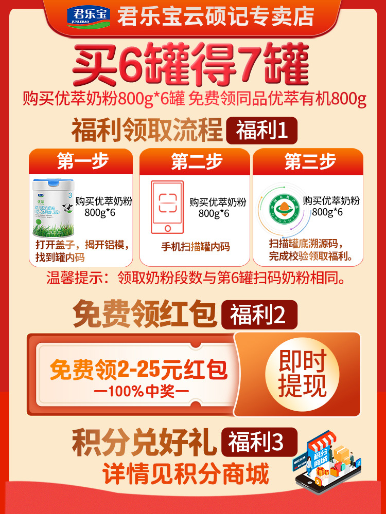 New Moms Exclusive) Junlebao Youextraction 3 Dusegments Organic Milk Powder Infant Formula Milk Powder 3-170g Small Canned Food