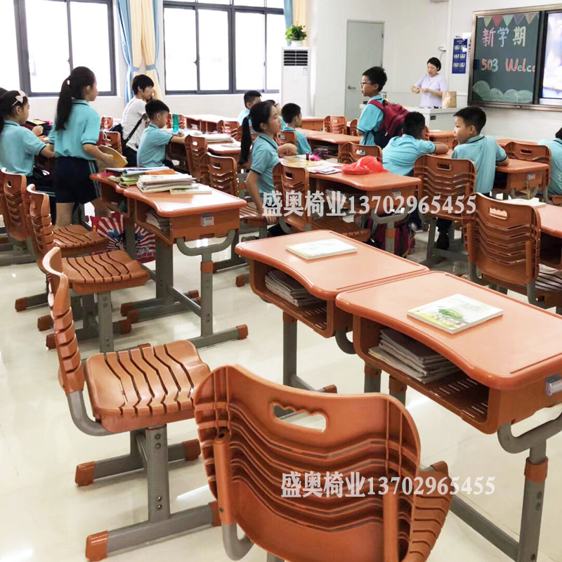 School classroom high school and primary school students can lift children's study desk combination set ABS plastic desks and chairs