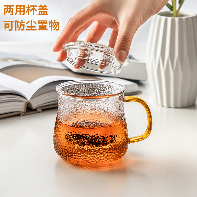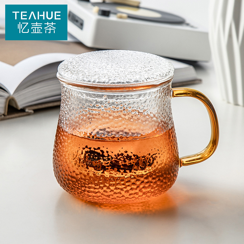 Memory pot tea hammer pattern glass cup tea cup with handle tea water separation glass teapot filter high temperature color cup