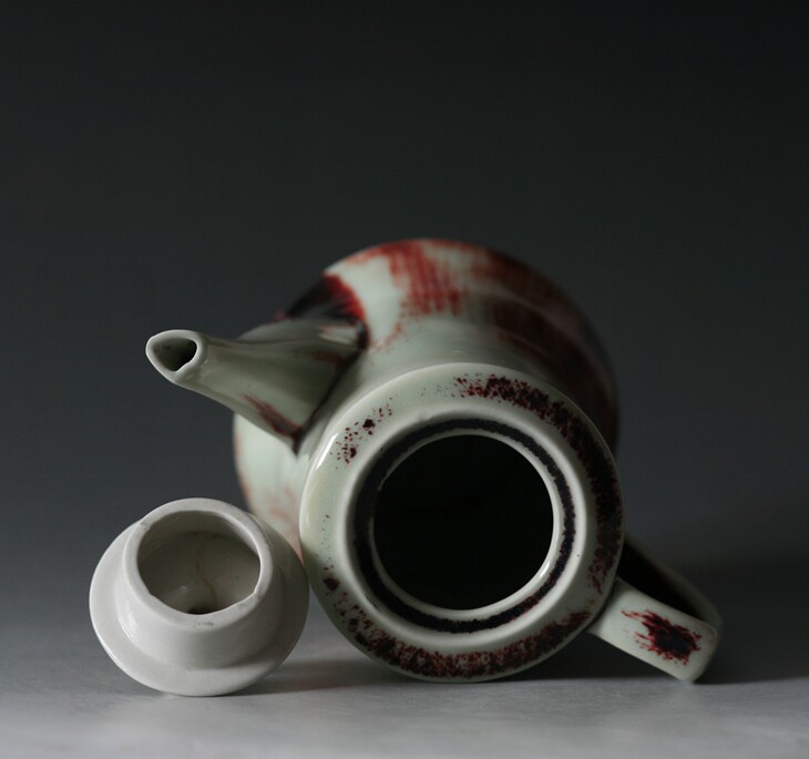 70s State Porcelain 1 Factory New Technique Great Teapot Wire Drawing Wine Red Glaze