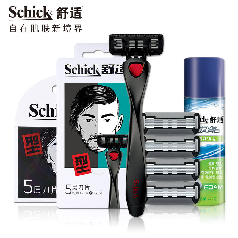 schick comfortable little black leopard 5 layers of manual razor blade for men's metal handle shaving knife