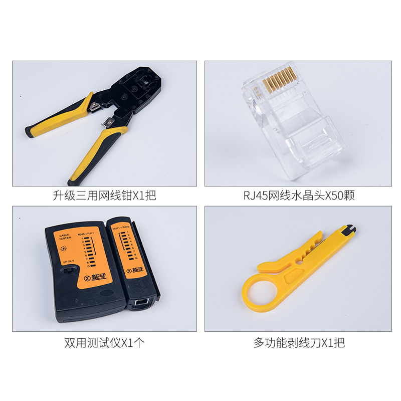 Network toolkit set Network line pressure clamp (send small yellow knife) wiring measuring instrument RJ45 crystal head(50) Ultra five classes of shielded crystal head(100) Ultra 6 classes of shielded crystal head