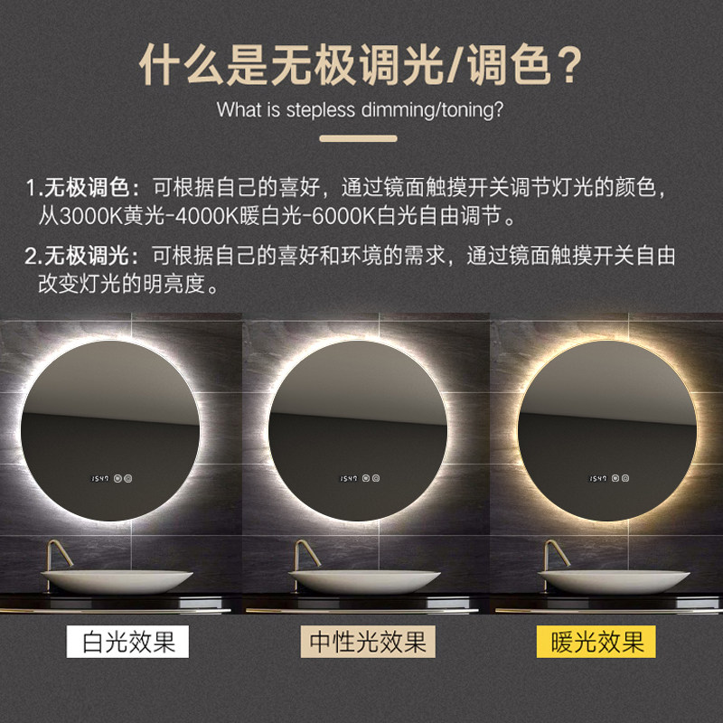 White light no touch anti-fog warm light no touch anti-fog white light single touch anti-fog warm light single touch anti-fog white light double touch time temperature display anti-fog warm light