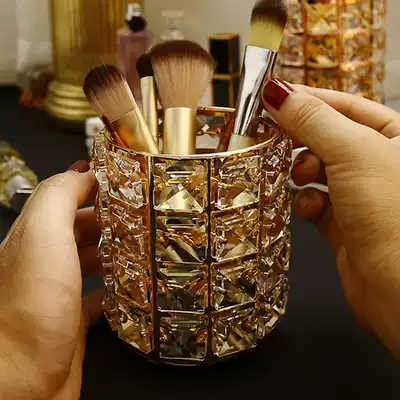 European light luxury style crystal pen barrel eyebrow pencil beauty makeup brush cylinder desktop storage finishing crystal candlestick ornaments