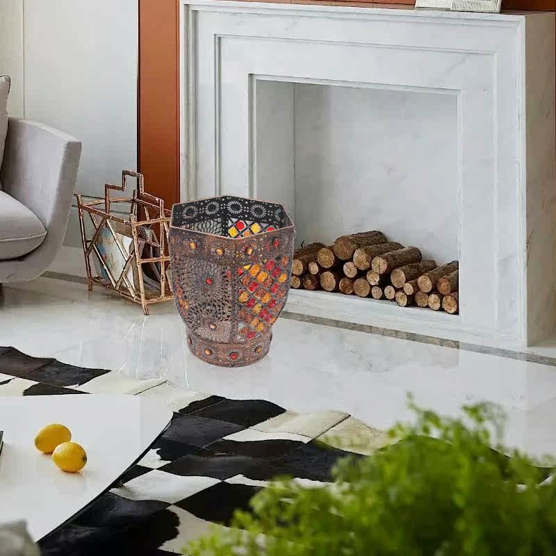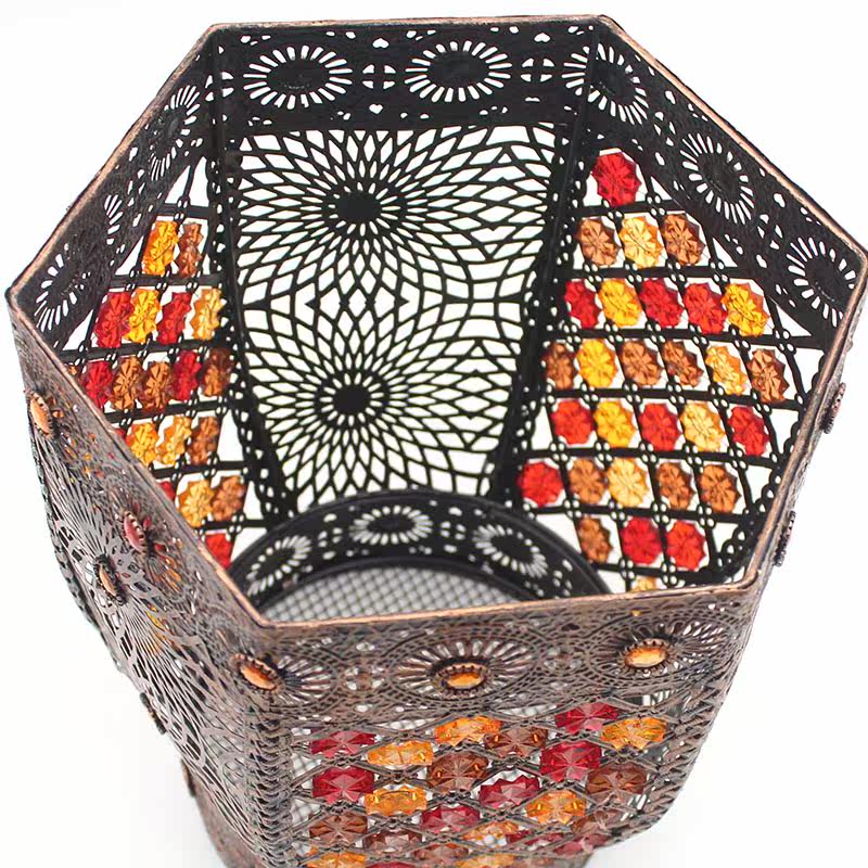 Trash can retro home living room creative office kitchen powder room hollow without cover handicraft wrought iron paper basket
