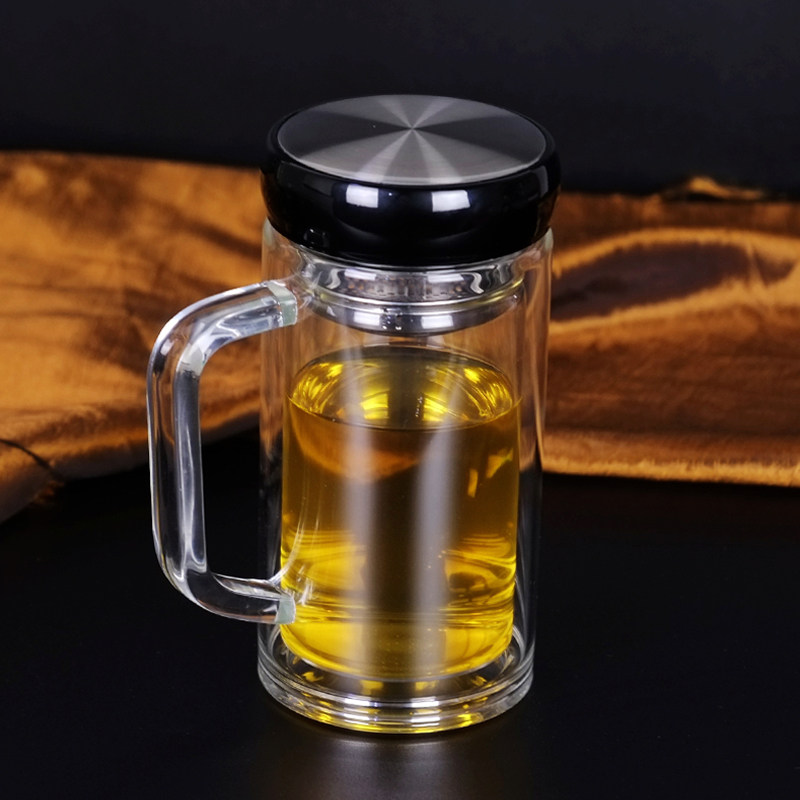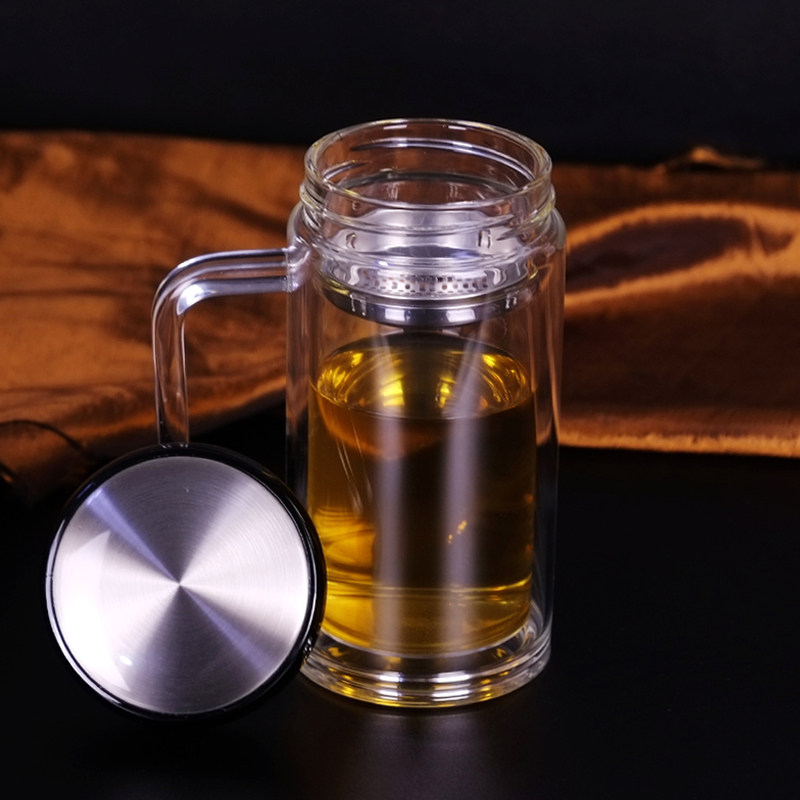 Comforter double-layer glass custom belt put home large capacity office filter tea men's drinking cup
