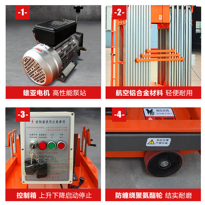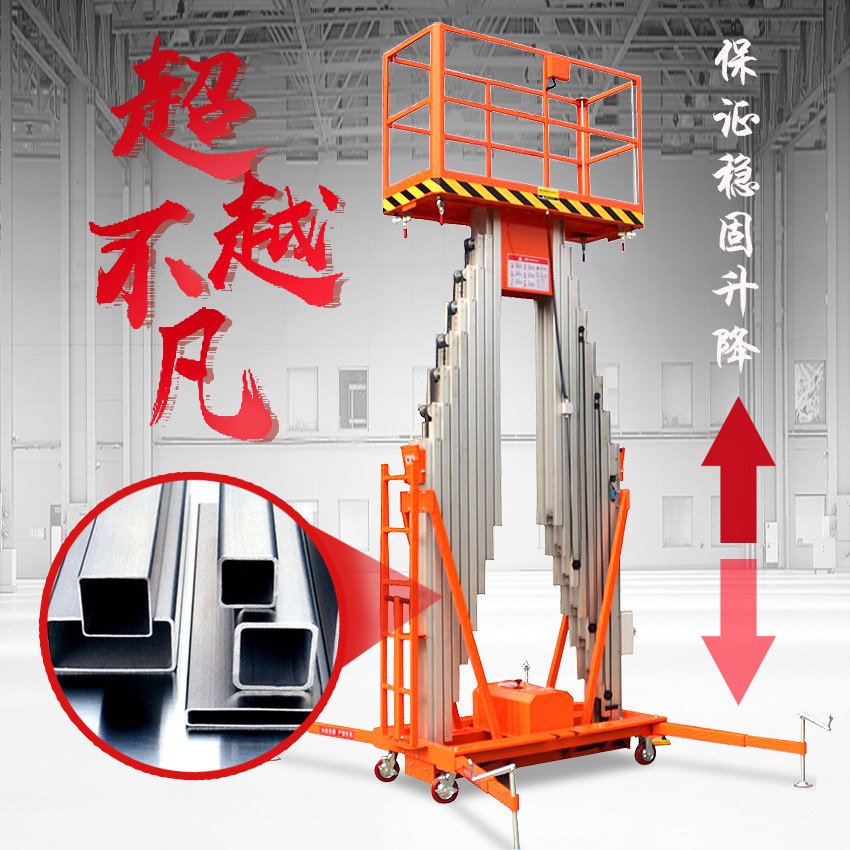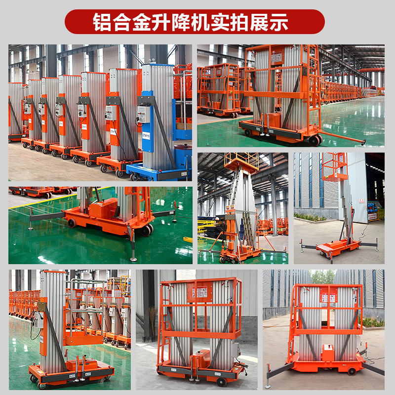 Load 100kg lift 4m single mast (export quality) Load 150kg lift 6m single mast (export quality) Customized aluminum alloy lifts Load 130kg lift 8m