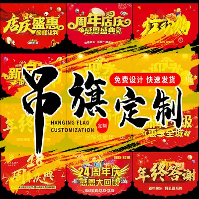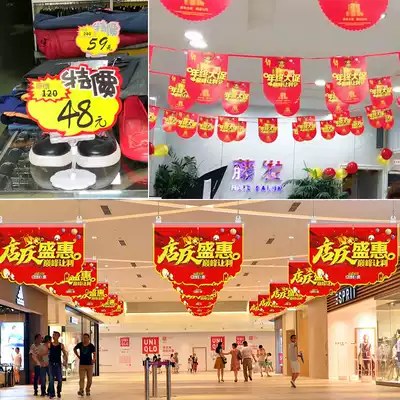 Holiday hanging flag custom supermarket opening pop poster floor sticker advertising paper Event anniversary store celebration double-sided outdoor shopping mall decoration scene decoration explosion sticker string flag hanging flag hanging rod