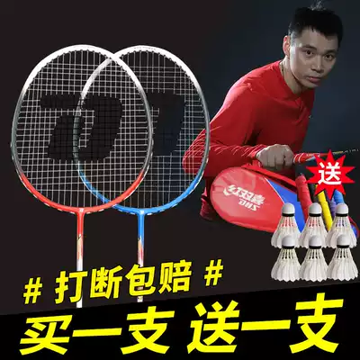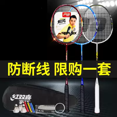 Red double happy badminton racket set double beat durable carbon composite fiber ultra light single children