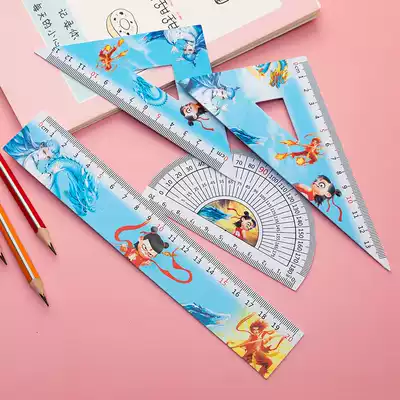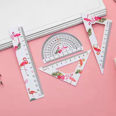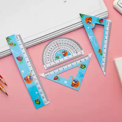 Primary school ruler stationery children's ruler set cartoon four pieces cute set ruler triangle ruler a set of school supplies stationery drawing multifunctional set of primary school first grade