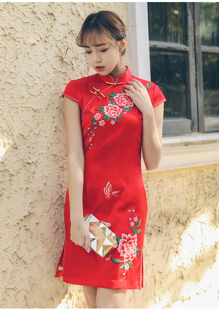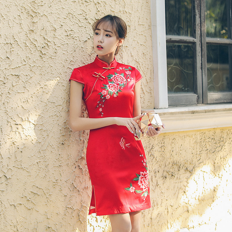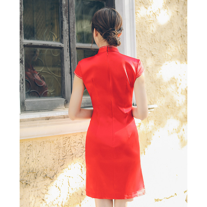 Silk mulberry silk cheongsam modified dress Chinese style young girl toast dress Bride short slim fit
