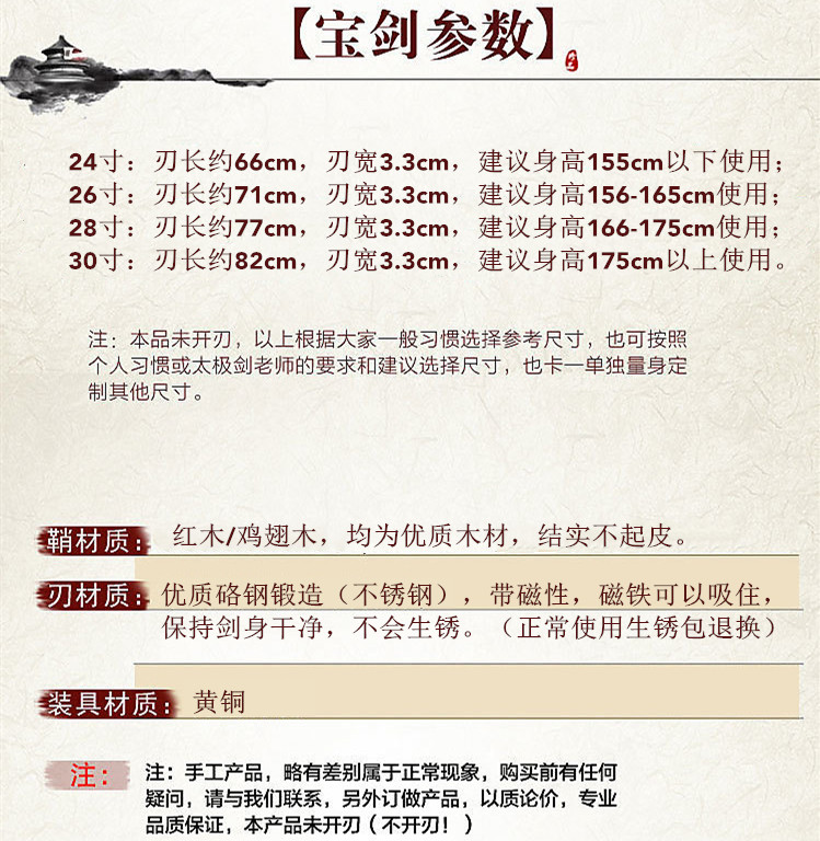 New pure copper Taiji sword stainless steel ladies morning exercise Taiji sword soft sword performance sword martial arts sword men did not open the blade