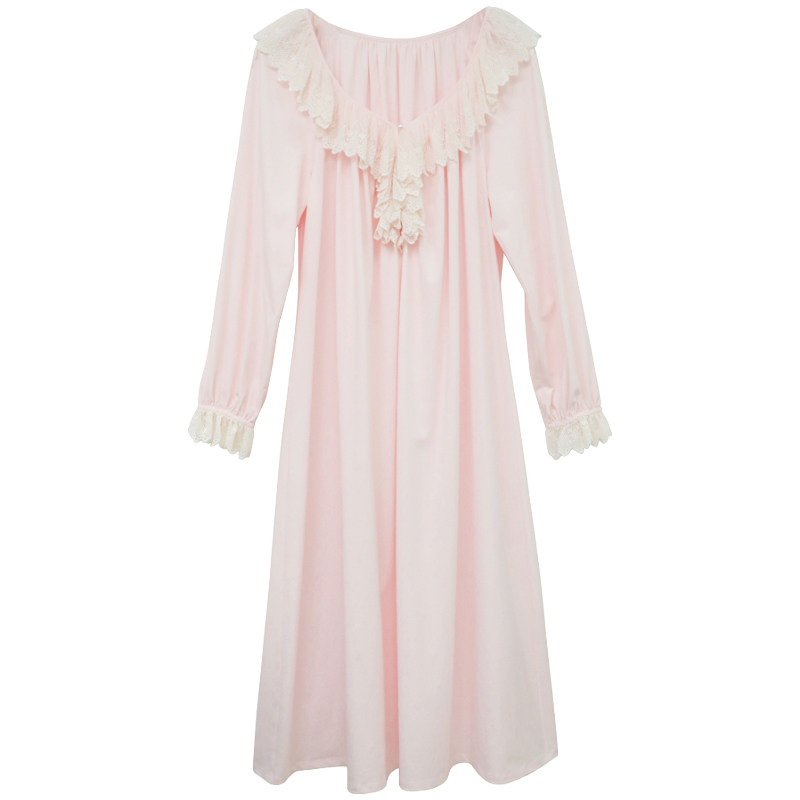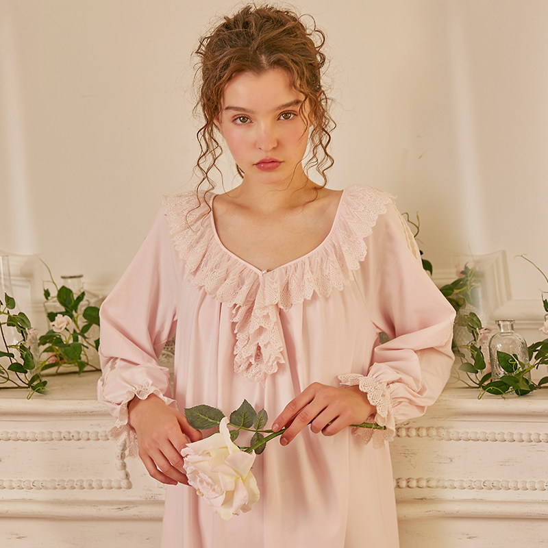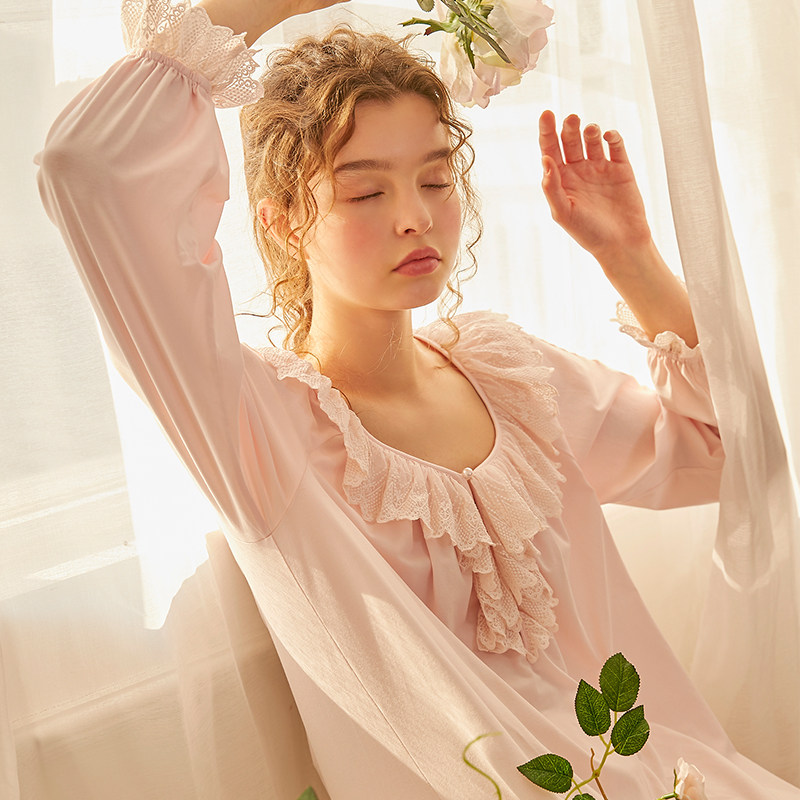 Dust Xi Spring Summer Sleeping Dress Original Princess Sweetness Sexy V Collar Long Sleeve Comeback Ancient Lace Long Version Knitted House Conqueror Woman