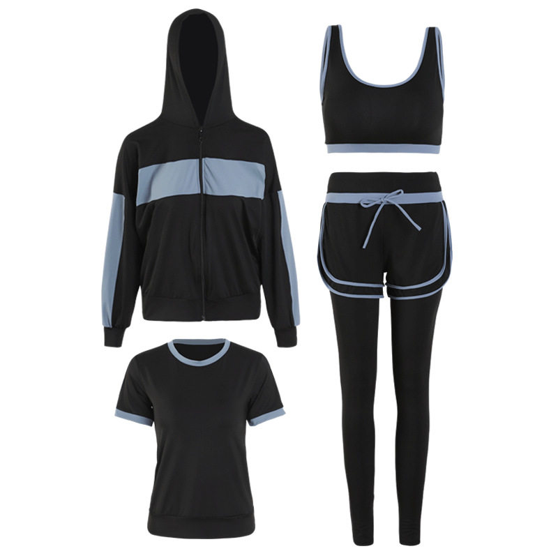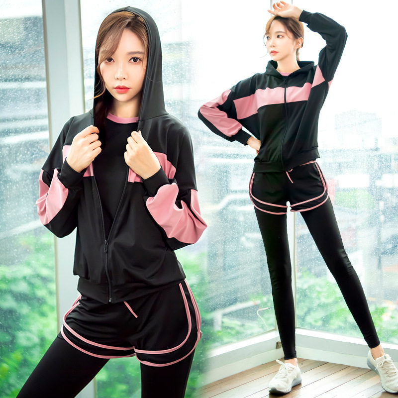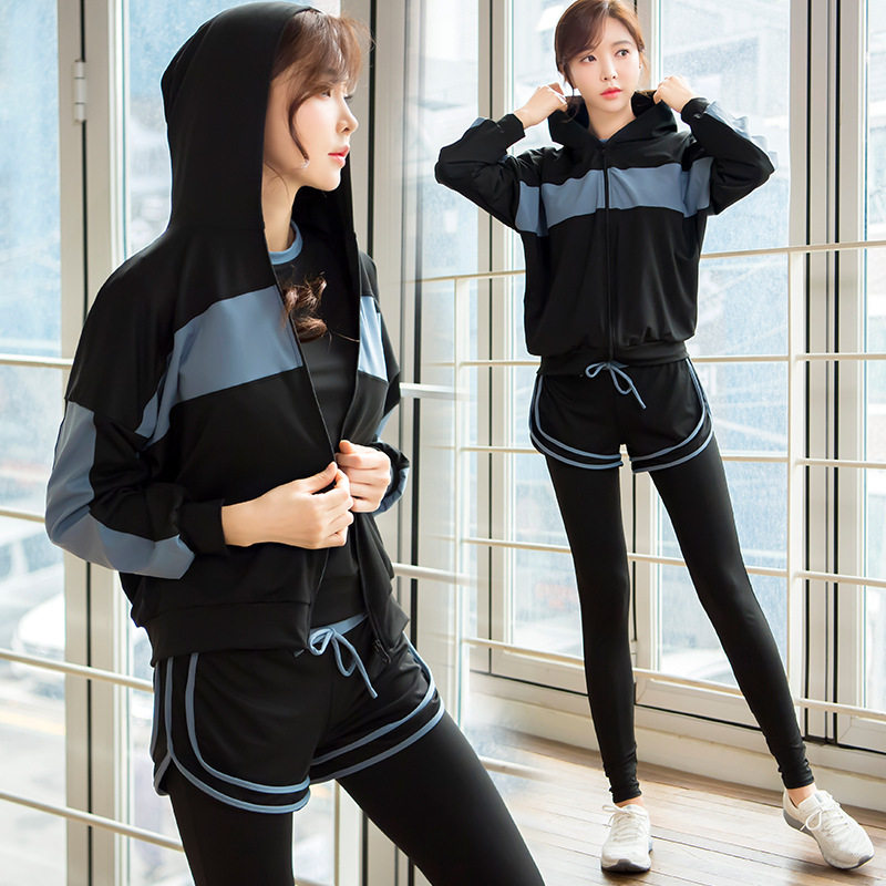 Yoga women's suit fitness running loose hoodie jacket shock-absorbing bra fake two-piece trousers female badminton clothing