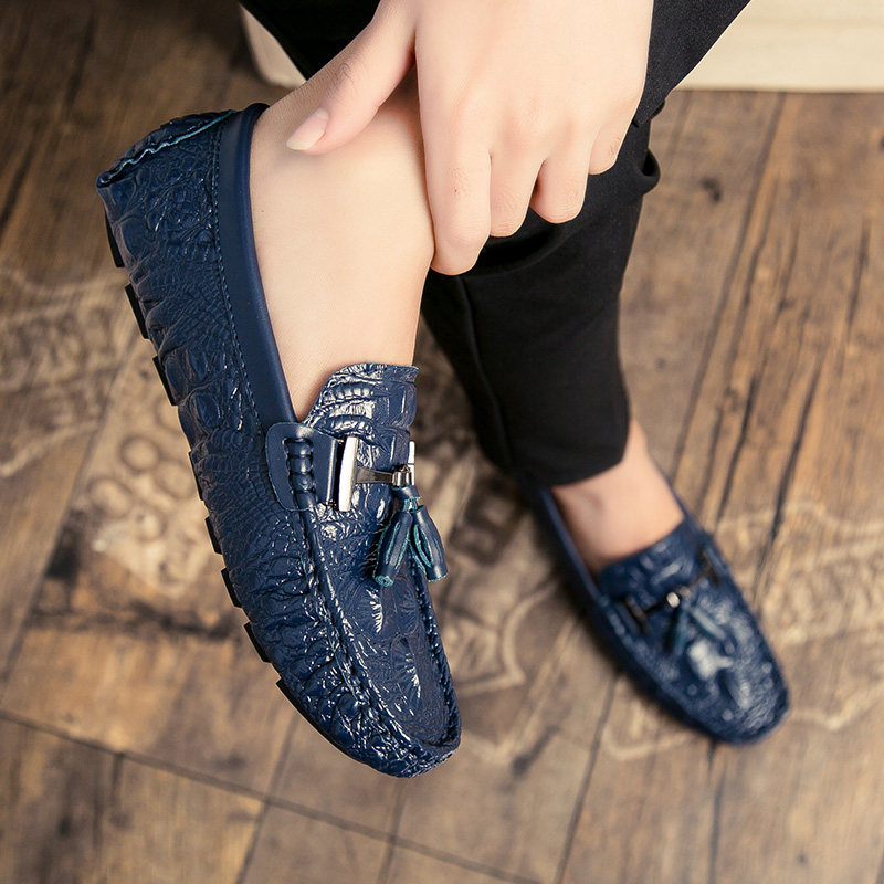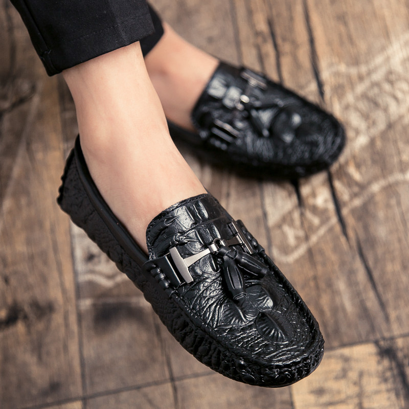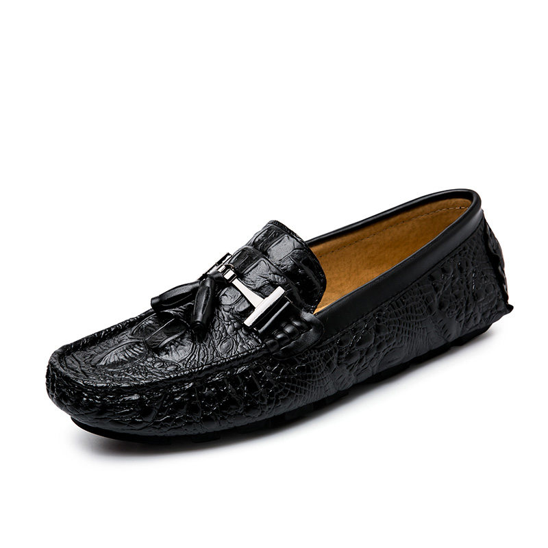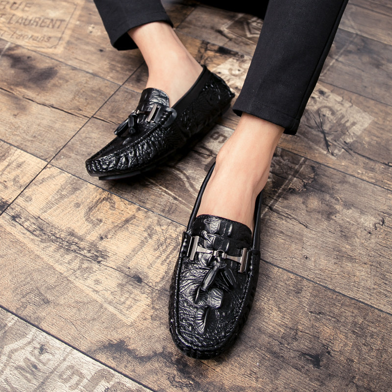 Spring and summer streaming suzu bean shoes men's genuine leather Inn Han version Men's casual shoes 100 hitchhiking shoes crocodile tattooing on men's shoes