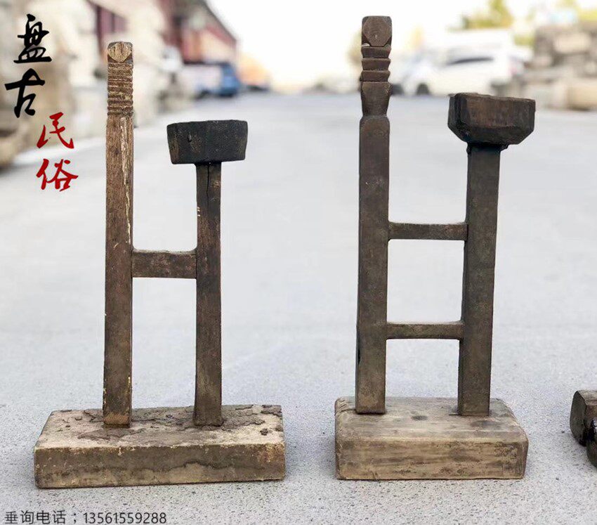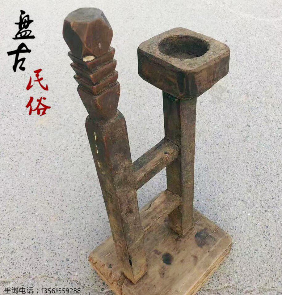 Nostalgic old oil lamp, wooden oil lamp, old-fashioned wooden butter lamp, old-fashioned wooden candlestick, folk custom, old object display