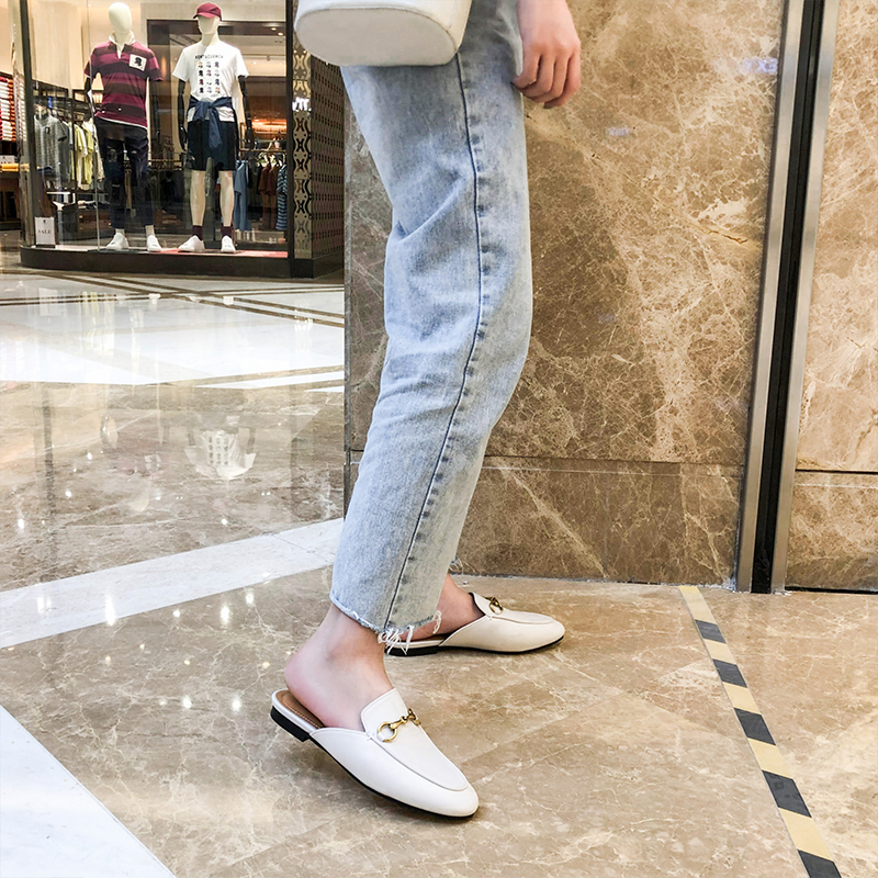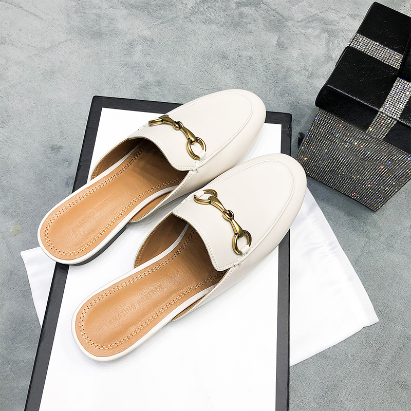 2022 new leather flat toe cap Muller shoes no heel half slippers comfortable net red outdoor wear slippers women's shoes