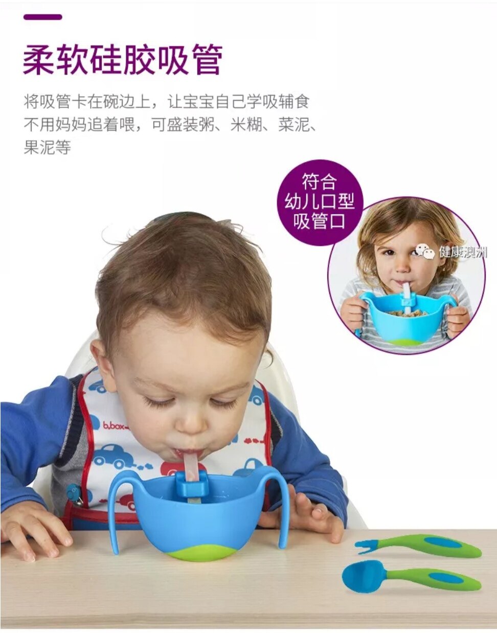 Sea Naughty B Box Australia Bbox Three-in-one Vice Food Bowl Straw Bowl Baby Children Snacks Bowl Cutlery