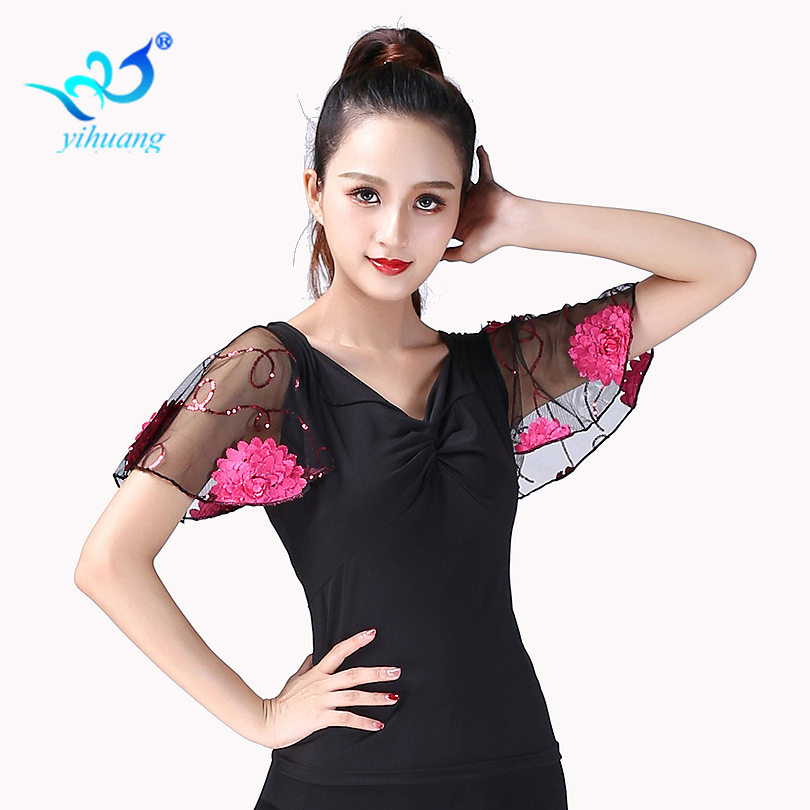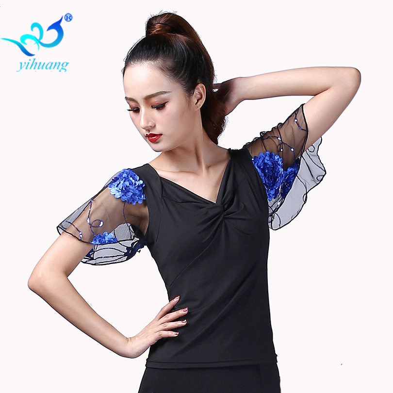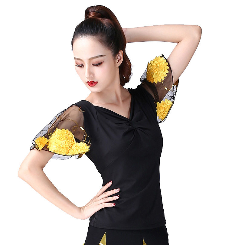 National standard dance modern dance top trumpet-sleeved short-sleeved dance practice clothes square dance dance competition performance clothing