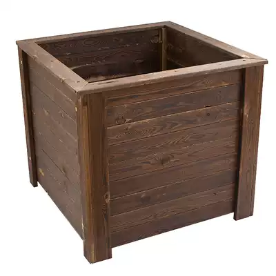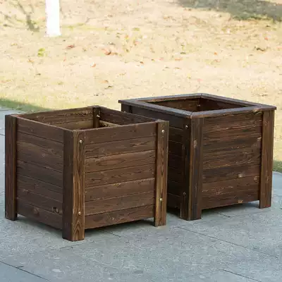 Anticorrosive wood flower box square carbonized solid wood flowerpot balcony outdoor courtyard planting box wooden oversized tree