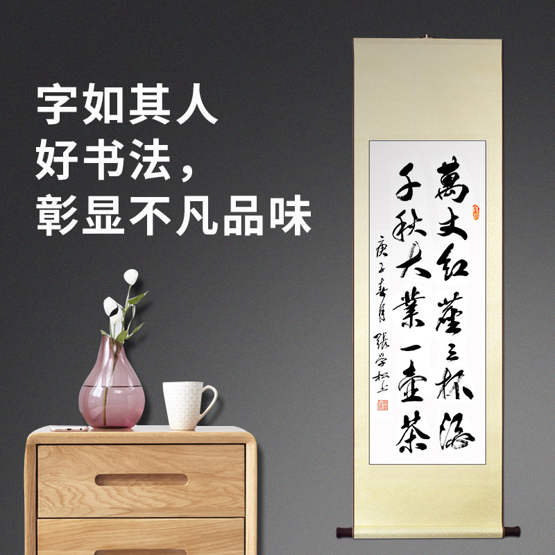 Rice yellow brocade scroll (other color remarks) Coffee color frame rice yellow brocade (other please note)