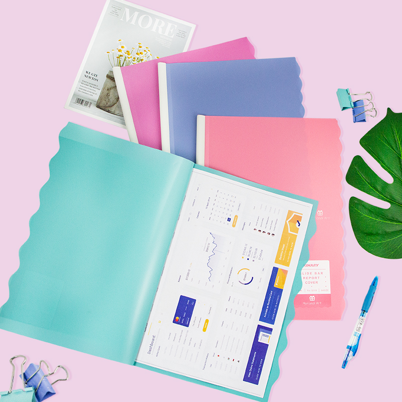 5 Loaded Gold Gain Q318 Morandi Colorful Wave Lace Draw Bar Clip A4 Pull-Lever Clamp Draw Pull-Lever Folder Colorful Cramp Paper Clip Information Collection Clip-Drop Round Bar Clip