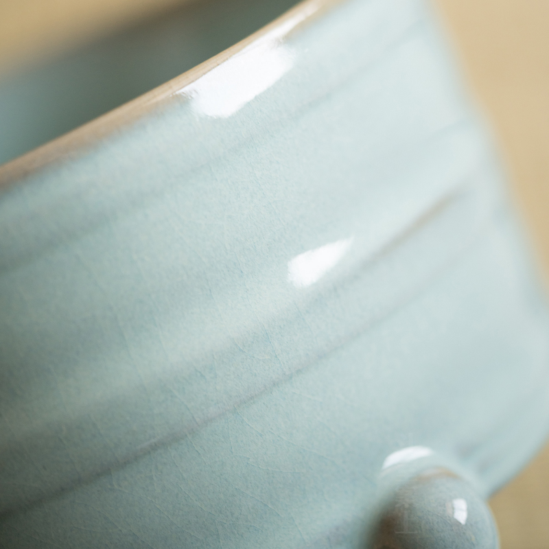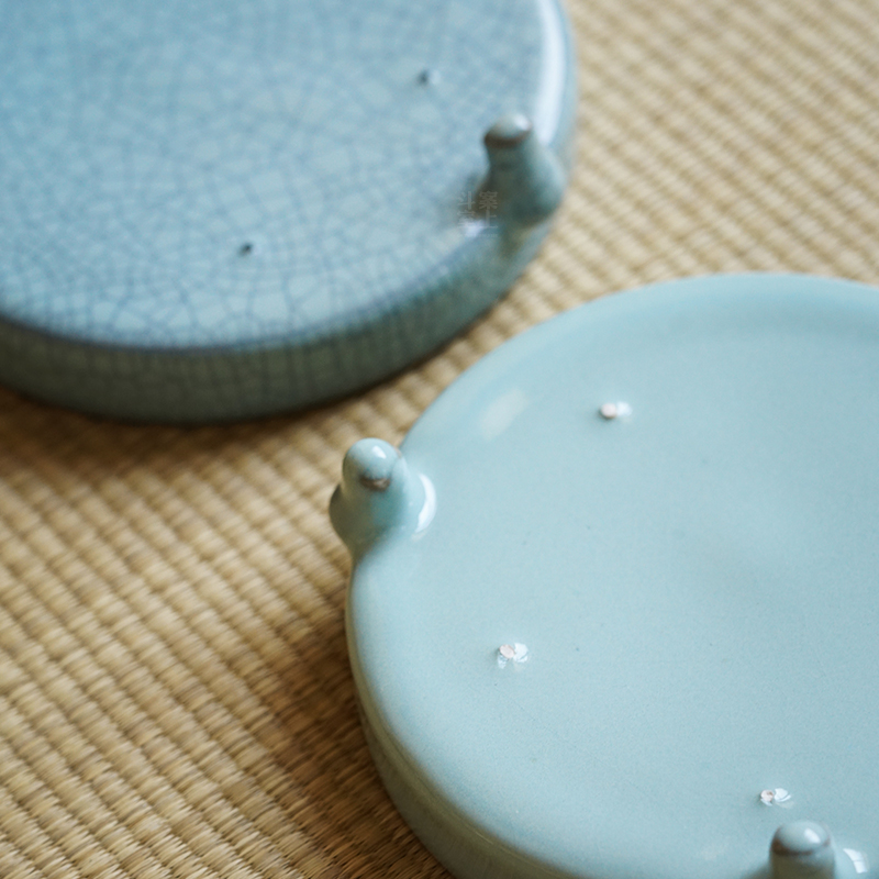 Fighting Room Jingdezhen imitated Song Ru Kiln Three Foot Dry Bubble Table Jug Bearing ceramic imitation ancient open sheet Tea Road accessories Nail Burn