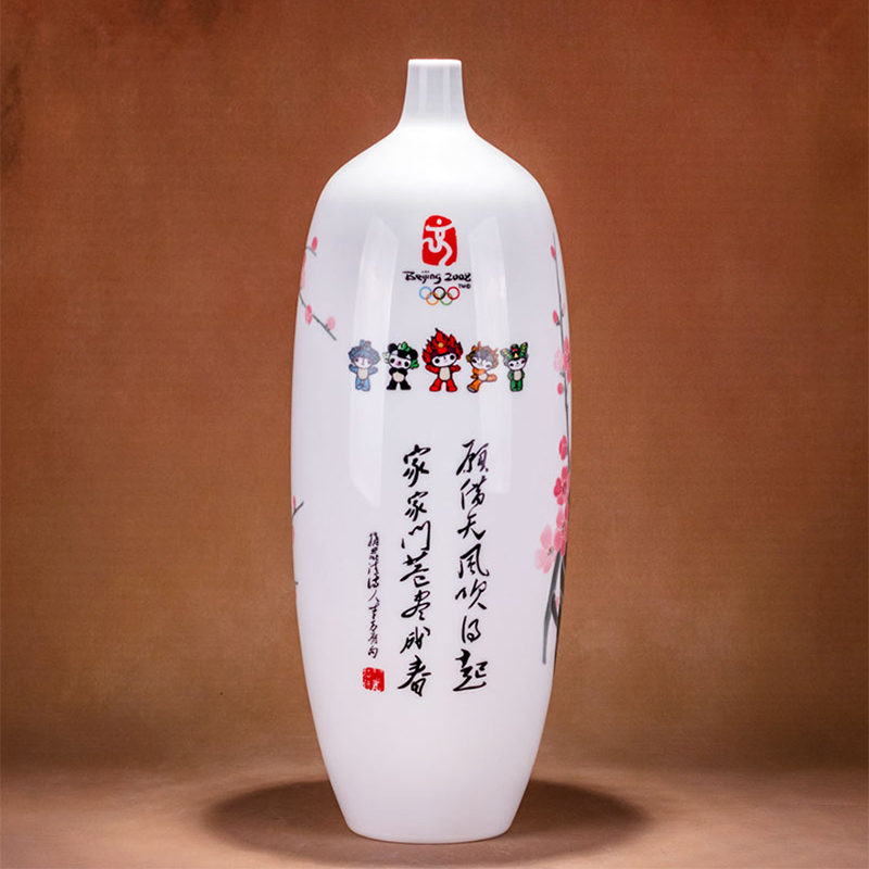 Collection Grade Department 29 Olympic Games Commemorative Porcelain Hand-painted Under painted ceramic Plum Blossom Vase Pendulum