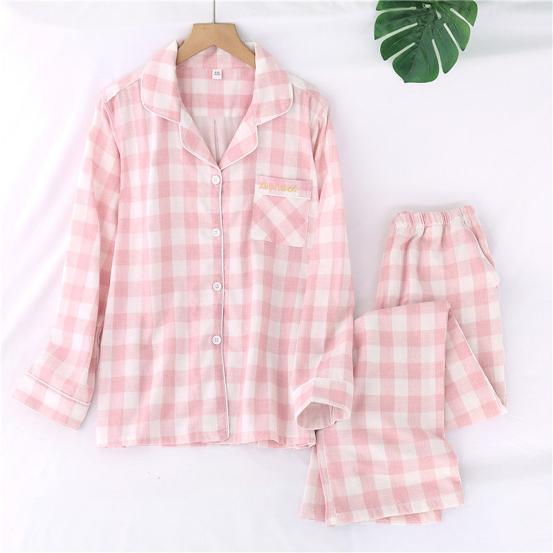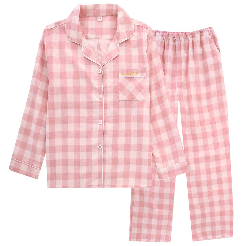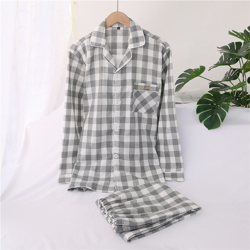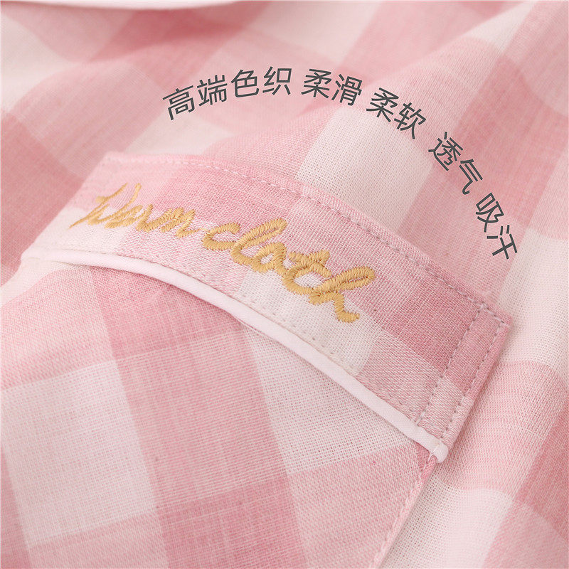Spring Summer full cotton color woven cotton yarn Long sleeves Sleeping lady Couple double cotton gauze Pure cotton Home Suits Suit Thin