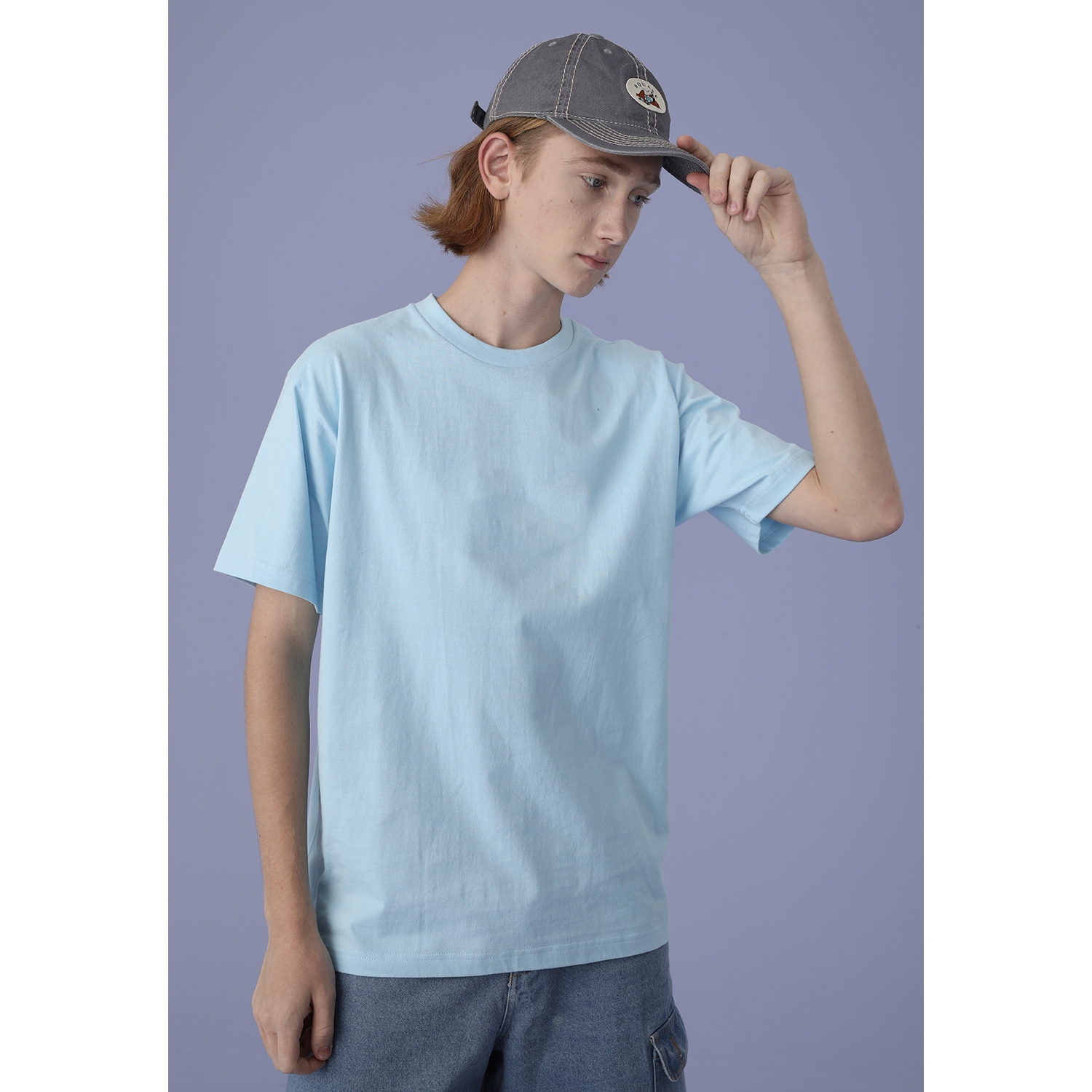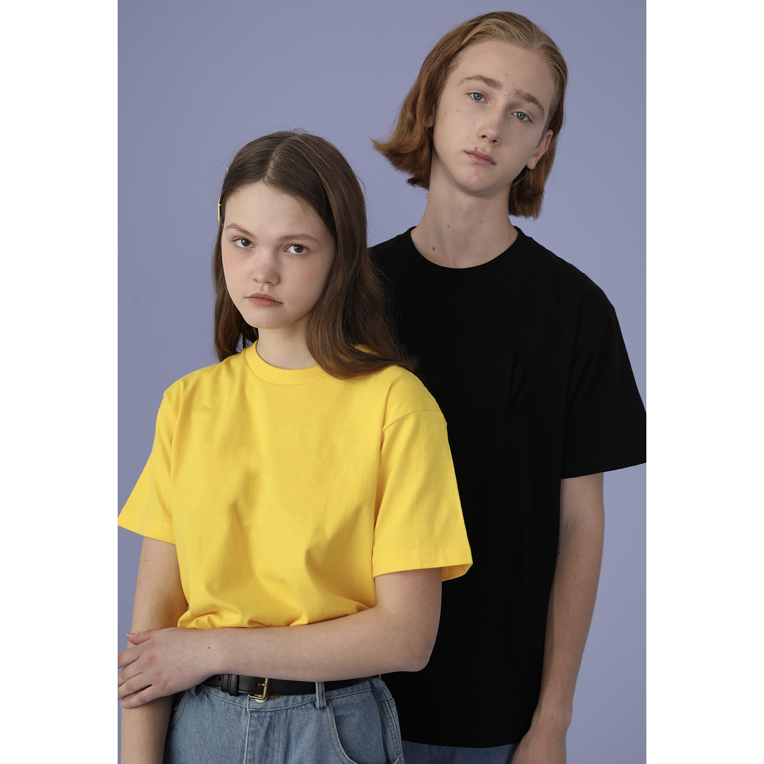 square houlest couple's spring short-sleeved solid color crew neck T-shirt women's multi-color mid-sleeve wild top