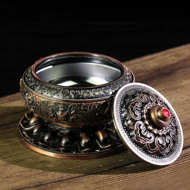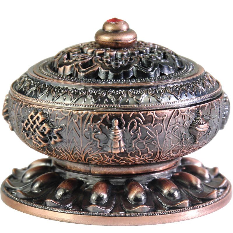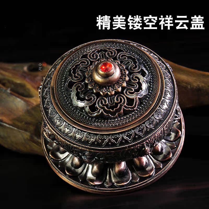 Tibetan Buddha Hall Eight auspicious ring incense burner zinc alloy household incense burner gift Buddha incense lavender decoration red copper mini