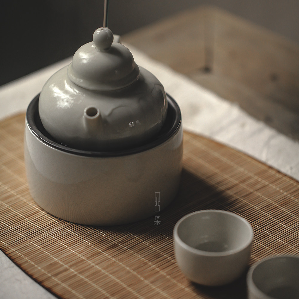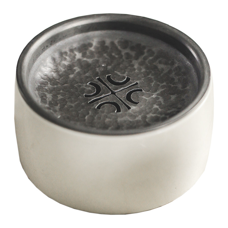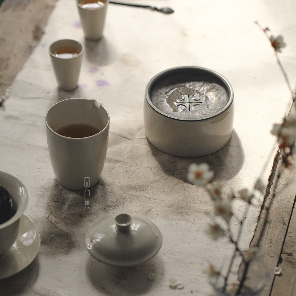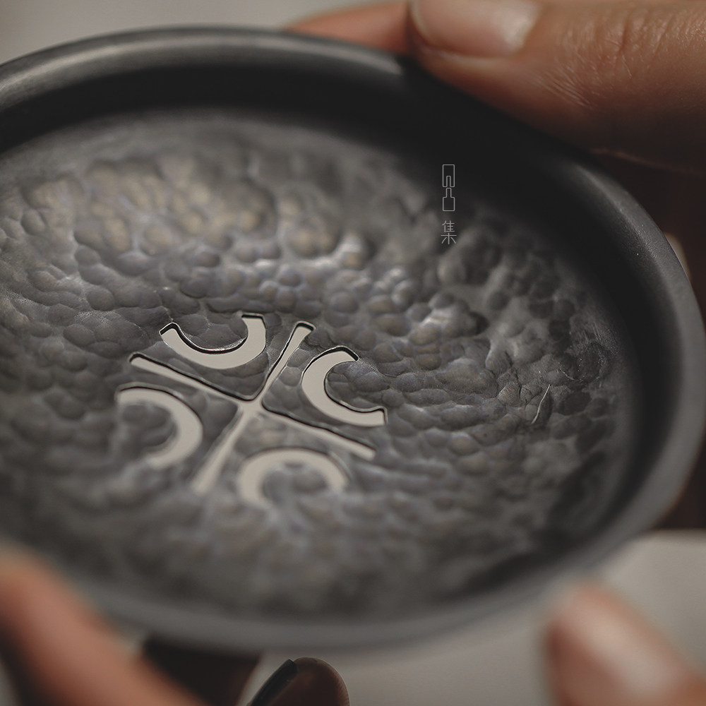 "Concave-convex collection" handmade by artists) natural vegetation gray glaze hammer pattern tin cover Jianshui