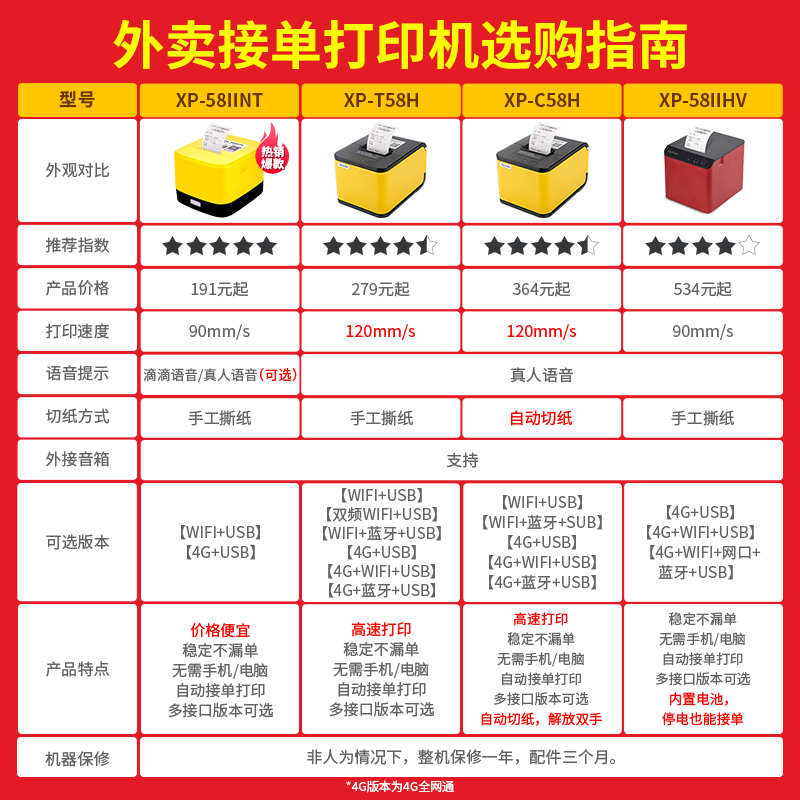 Xinye C58H fully automatic order receiving wifi wireless live voice meituan are you hungry takeaway small ticket cloud printer