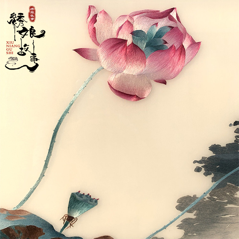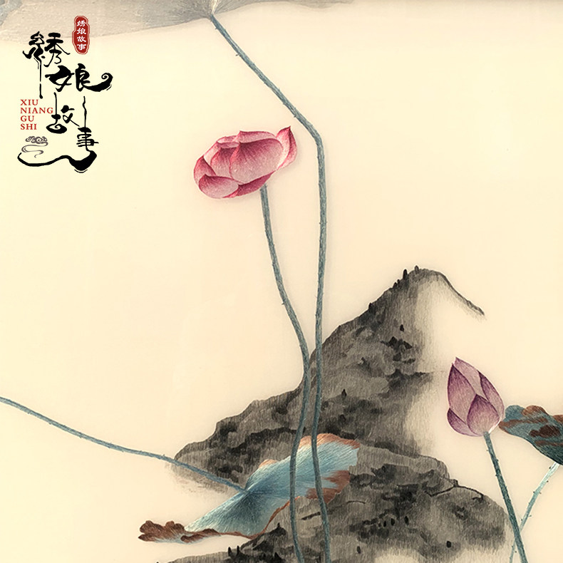 Su embroidery finished hanging painting pure hand embroidery painting lotus living room sofa wall banner decoration painting Chinese style simple style