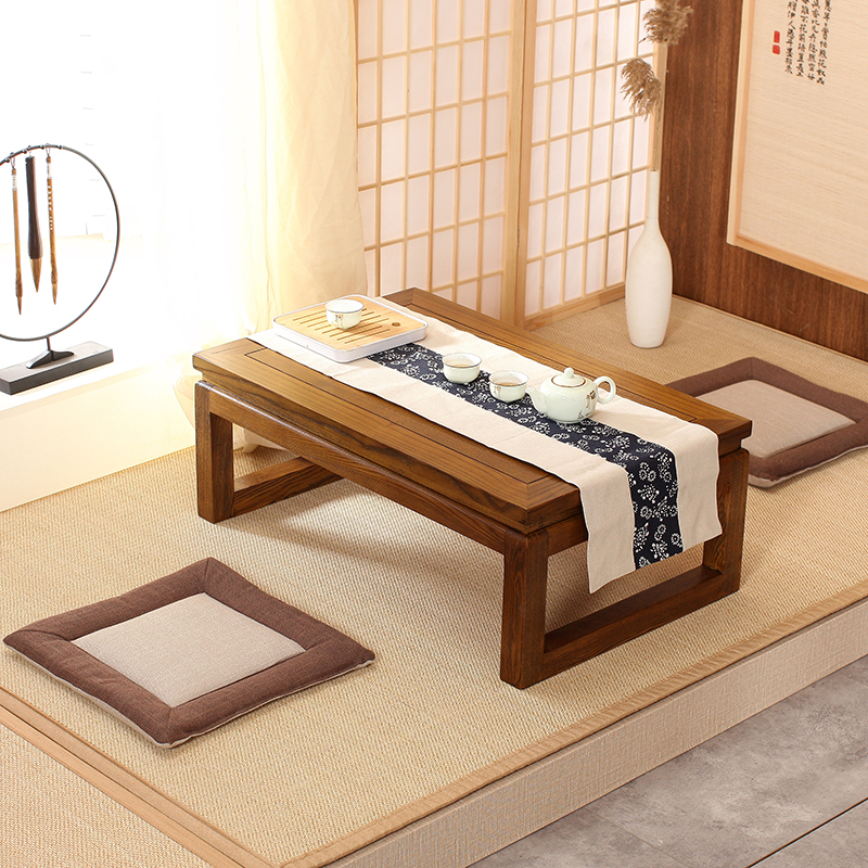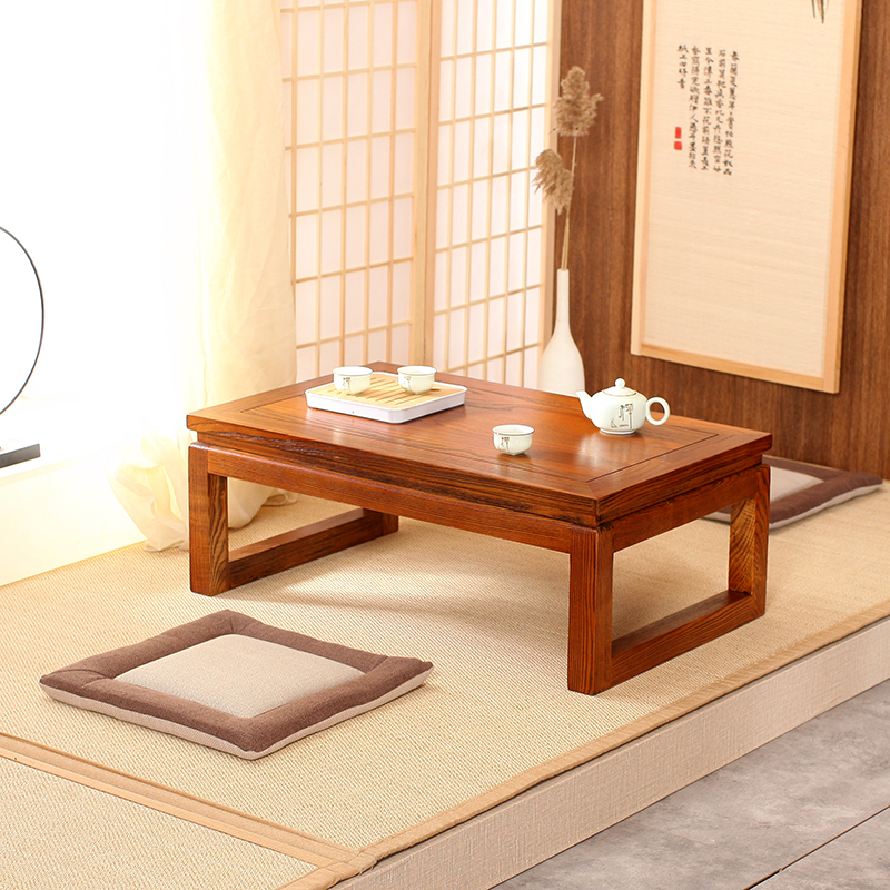 Solid wood tatami's tatami tea table floating window small table day style short table Zen-style tea table sitting on earth table State school table elm wood